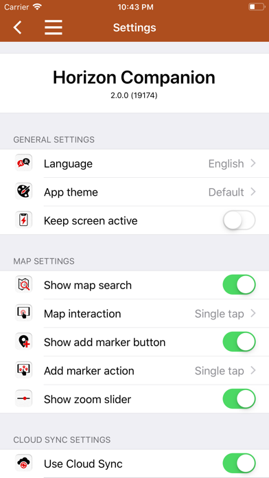 Offline map for Horizon Zero Dawn. The map features the positions of: